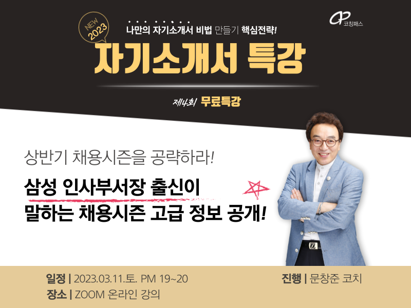 안녕하세요. 코칭패스입니다.제 4회 취업 무료특강을 진행합니다.