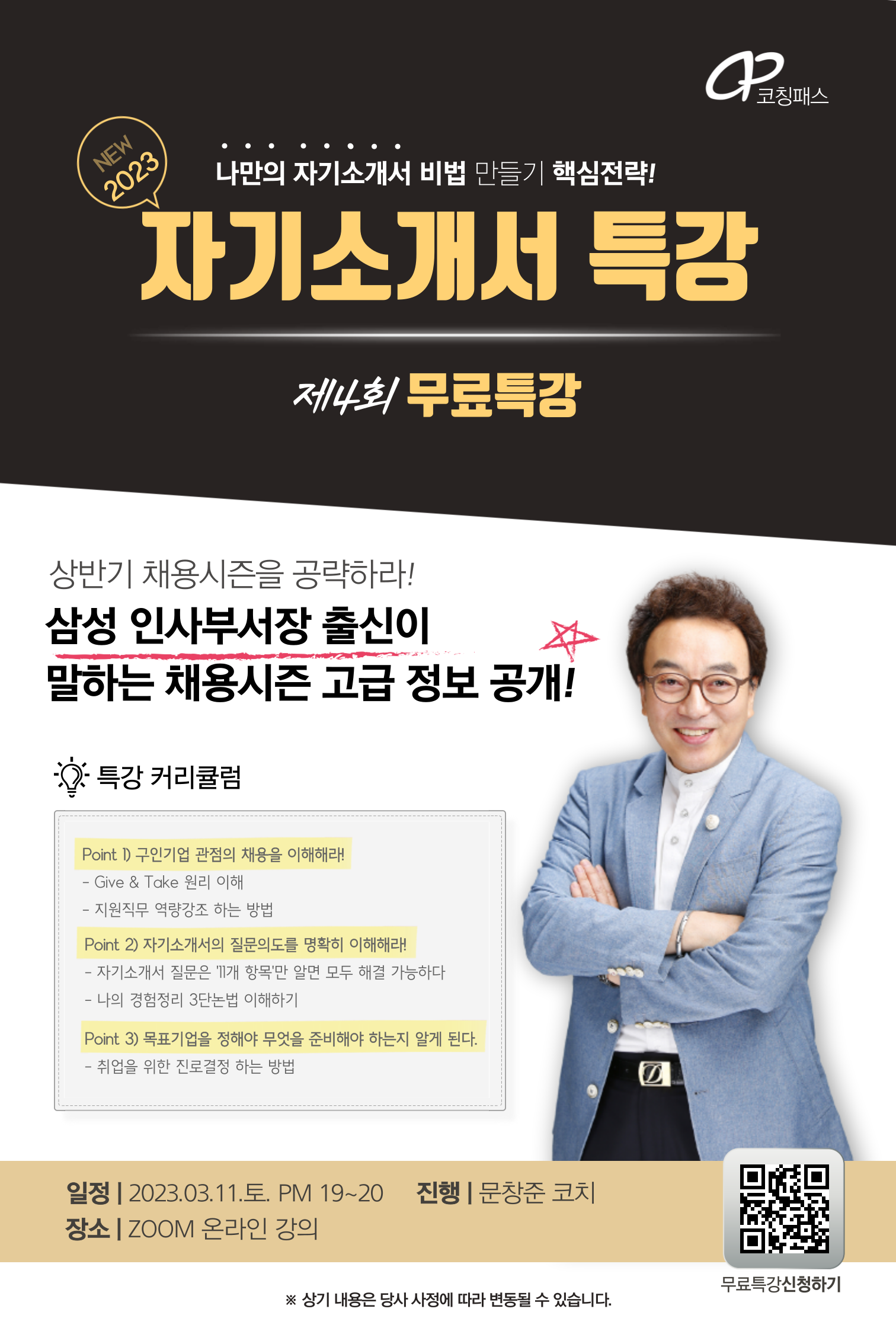 ✔ 특강 일정 : 2023년 3월 11일(토) 19시~20시